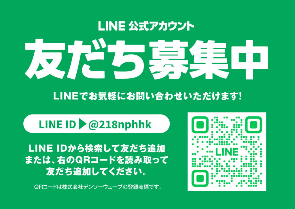 LINEでのお問い合わせは、下記より友だち追加してください。