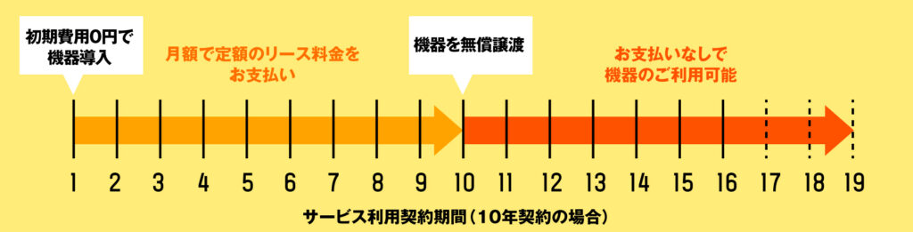リース契約中は故障時の修正費用はかかりません。満了後に無償譲渡。再度トレエネ契約で最新機器に交換もできます!
